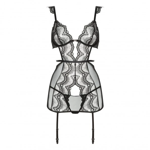 La nuisette Peyton est toute de dentelle et tulle pour jouer sur l’effet de transparence. Vos seins ne se cachent plus derrière le tissu mais derrière une dentelle qui laisse tout voir. Un petit carré de strass entre les deux bonnets permet d’attirer l’oeil exactement là où il faut. Sur votre ventre, la nuisette se fait provocante en prolongeant la dentelle jusqu’en bas. Sur les côtés, la tulle assure de ne cacher aucune partie de votre corps. Une élégante cordelette permet de cintrer la nuisette pour affiner encore plus votre silhouette. Dans le dos, le laçage et le bas de la nuisette appuient la courbure de vos fesses pour un résultat plein de sensualité.