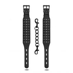 Les menottes bracelets sont réalisées en polyuréthane 100% végétalien (aspect cuir) et sont ajustables.