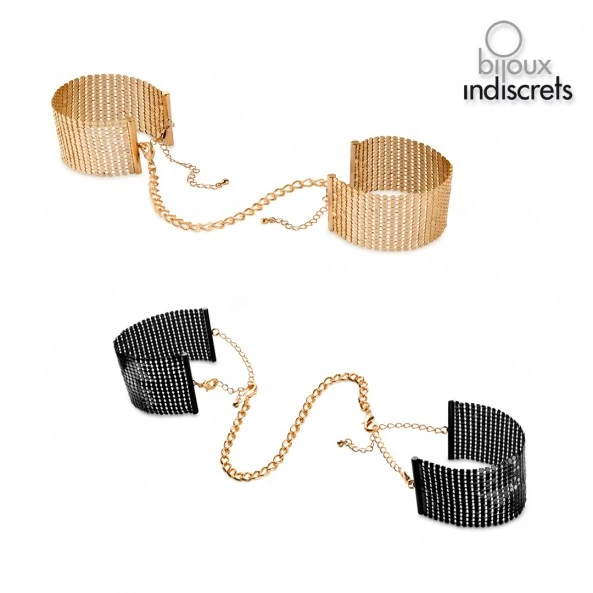 Version luxe mais à un prix raisonnable pour ces paires de menottes extrêmement glamours. Voila de quoi pimenter vos soirées sexy tout en restant raffiné. La marque Bijoux Indiscrets, dont les équipes sont constituées exclusivement de femmes ayant le regard toujours tourné vers les tendances du moment, ont conçu « Désir Métallique ». Ces accessoires sexy sont vraiment très beaux et bien conçus. Bien qu’entièrement métalliques, elles sont très agréables à porter. Une chaîne d’environ 35 cm séparera vos poignées bracelets étincelants et vous laissera une certaine liberté d’actions… coquines. Présentées dans une belle boîte cadeau, ces menottes pourront faire un superbe cadeau. Deux coloris différents existent pour ces menottes : Métal Noir ou Métal Or.
