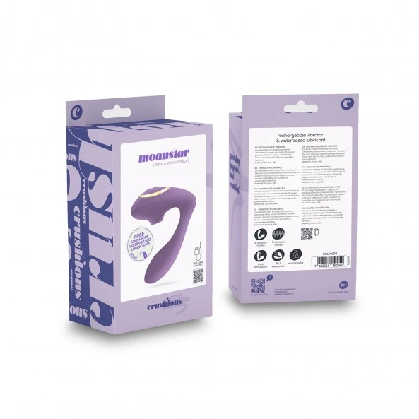 Dans le détail : Avec 10 modes de stimulation différents pour la partie Point-G ainsi que 10 modes d’ondes pulsées pour la zone clitoridienne, il vous suffit de poser l’embout du sextoy autour de votre clitoris et insérer la partie pénétrante sur votre Point-G pour vous procurer des sensations comme ne vous n’en avez jamais eu. Crushious Moanstar se recharge par cordon USB fourni. Il est totalement recouvert d’une peau de silicone sans phtalate, sans latex et hypoallergénique. L’étanchéité est totale aux normes IPX7 permettant une utilisation dans votre baignoire. L’autonomie de l’appareil est environ 1H00 après une pleine charge de 2H30. Le contrôle de l’ensemble des fonctions sont pilotables à partir de seulement 2 boutons. Vous trouverez également dans le coffret, un manuel d’utilisation rapide et un flacon de lubrifiant de 50 ml.