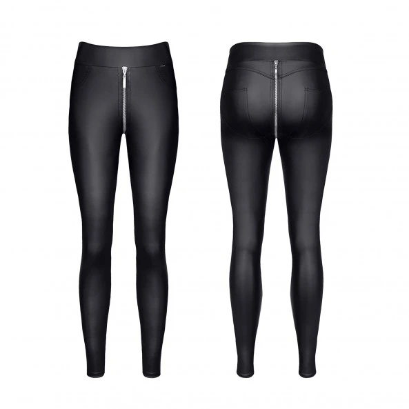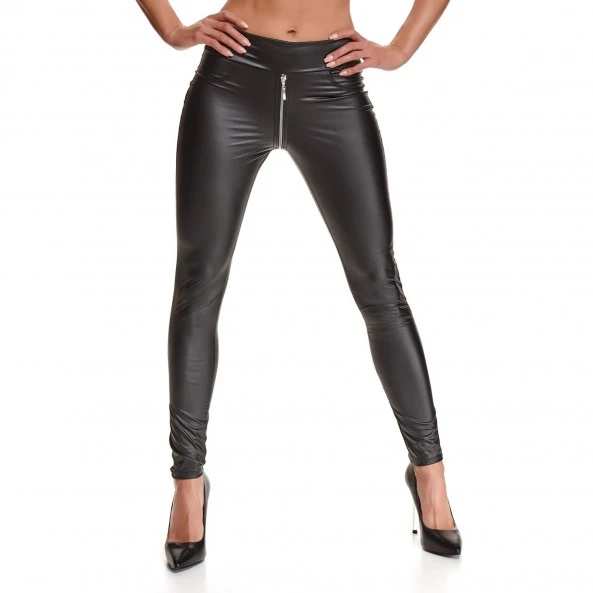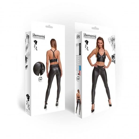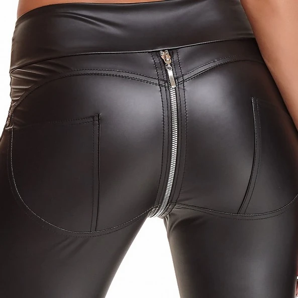 ConfectionnĂ©e avec un tissu « weetlook » lui donnant un effet de cuir mouillĂ©, la matiĂšre est extensible afin de mettre en valeur les courbes de votre silhouette. Il dispose d’une grande fermeture Ă©clair partant du pubis jusqu’au sommet des fesses.