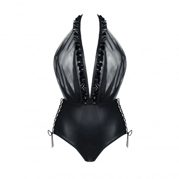 Ce teddy demoniq comporte une coupe très échancré pour un décolleté profond très torride. Cet lingerie s’adapte parfaitement à la silhouette grâce à un laçage dans le cou permettant une tenue parfaite de votre lingerie.