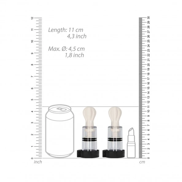 Ces 2 petites pompes à seins ont été conçues pour vous faire découvrir des sensations inconnues d’une rare intensité. Équipées du système d’électro-stimulation, elles deviennent des armes d’intenses plaisirs redoutablement efficaces. Une fois en place sur les mamelons, il vous suffira de tourner les 2 larges embouts en silicone afin d’obtenir l’aspiration désirée. La télécommande à laquelle elles sont reliées vous donnera accès à 4 modes d’électro-stimulation (Tap, Vibrating, Massage et Auto) dont vous pourrez régler la vitesse par un bouton (Speed) ainsi que l’intensité grâce à la molette (Weak/Strong) sur le côté de cette dernière. Vous pourrez donc découvrir les joies érotiques de l’électro-stimulation qui pourront vous procurer du bien-être mais également exercer un pouvoir de domination si vous confiez la télécommande à votre partenaire de jeux BDSM. Par leurs matières, elles sont très facilement nettoyables à l’eau tiède et au savon en prenant garde de ne pas mouiller les jonctions entre les fils et les appareils.