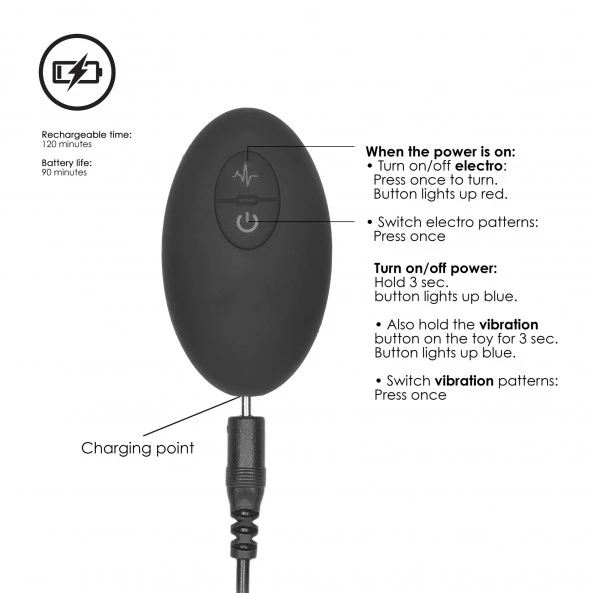 Outre le fait d’être un stimulateur prostatique ultra-complet, ce sextoy masculin est pourvu du système d’électro-stimulation présent dans toute la gamme Electroshock. Pourvu de 10 modes d’utilisation, 10 vitesses de vibration et 5 en mode E-stim, ce stimulateur est un outil de plaisirs hors du commun, il contentera les plus exigeants. Les effets de l’électro-stimulation sont prodigués sur 2 zones différentes avec un réglage précis allant de très doux a très intense. La télécommande sans fil fournie vous permettra le pilotage de toutes ces fonctions. Recouvert d’une peau de silicone de très haute qualité (IPX7), il est très agréable à utiliser et facile d’entretien. À utiliser en solo ou à deux, ce stimulateur masculin est en tout cas, à utiliser sans modération.