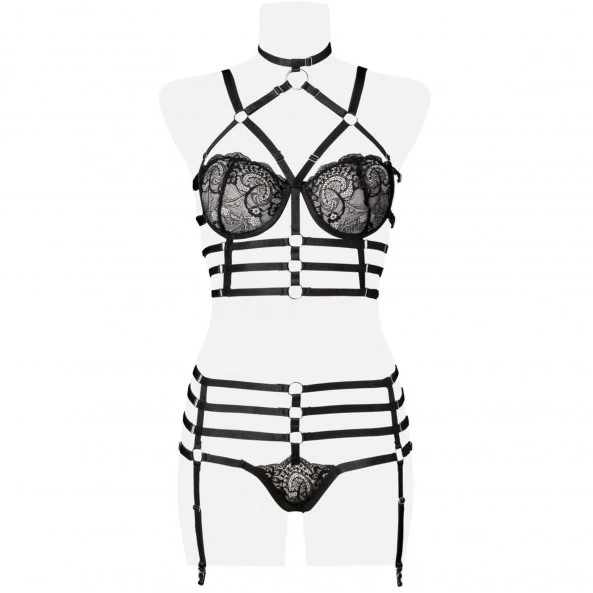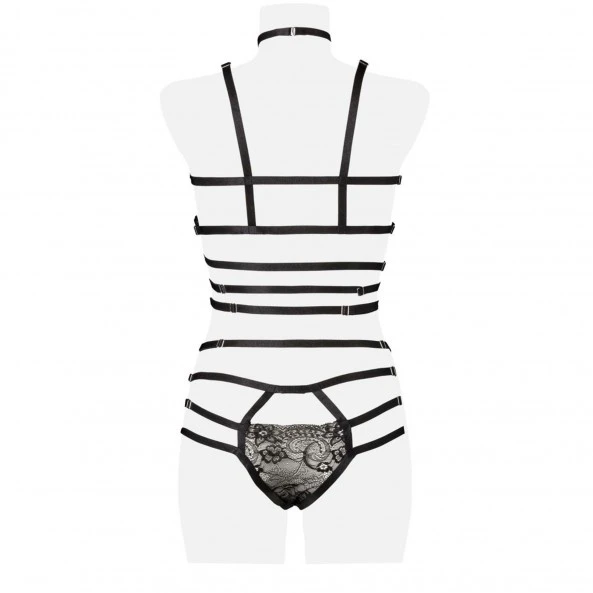 Les lignes du harnais soulignent les courbes de votre corps tandis que les anneaux métalliques qui les relient, ajoutent un effet bad girl chic qui saura séduire et surprendre votre partenaire.