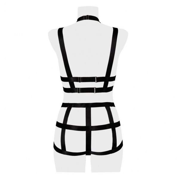 L’Ensemble Harnais réalisé en dentelle au crochet et bandes élastiques se compose de 3 pièces :