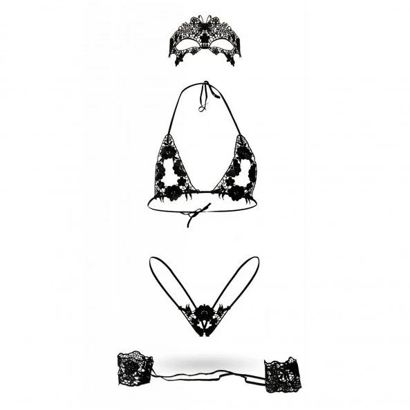 L’Ensemble Sexy Bondage 4 Pièces au look minimaliste, idéal pour sublimer votre corps se compose de 4 pièces :