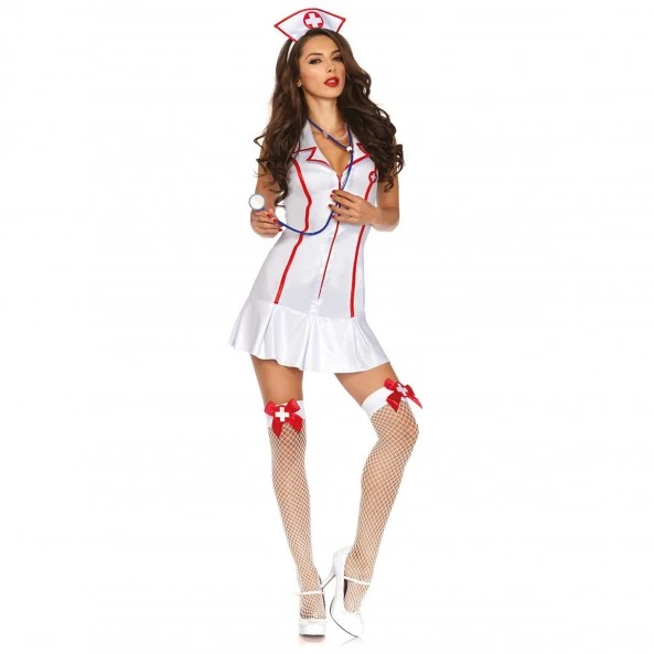 Pour scénariser les moments coquins, les costumes sont des accessoires très efficaces. Soyez l’infirmière de ses rêves, ou des vôtres ! Vêtue d’une petite robe blanche, bordée de rouge, vous viendrez lui prodiguer les premiers soins. Penchée sur le malade, vous lui offrirez une vue plongeante dans votre décolleté. Bien sûr, vos cheveux seront retenus par la coiffe assortie. Munie de votre stéthoscope (non vibrant !!!) vous allez écouter son cœur battre… Quels symptômes, à traiter d’urgence, allez-vous découvrir ?