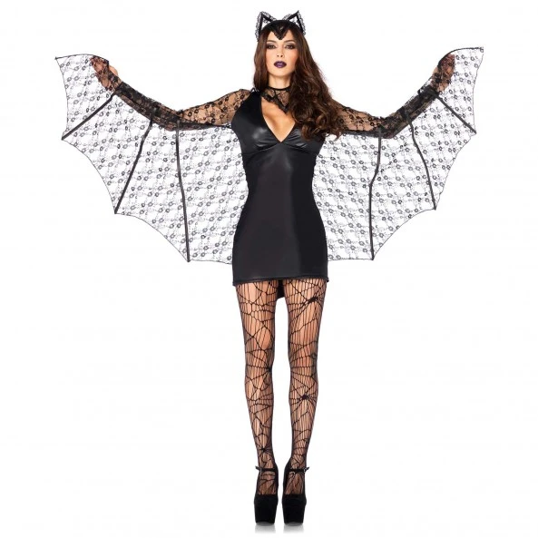 Ce sexy déguisement de chauve-soucis est composé de 3 pièces dont une robe à l’aspect cuir mouillé comportant de manches en tulles en forme d’ailes.
