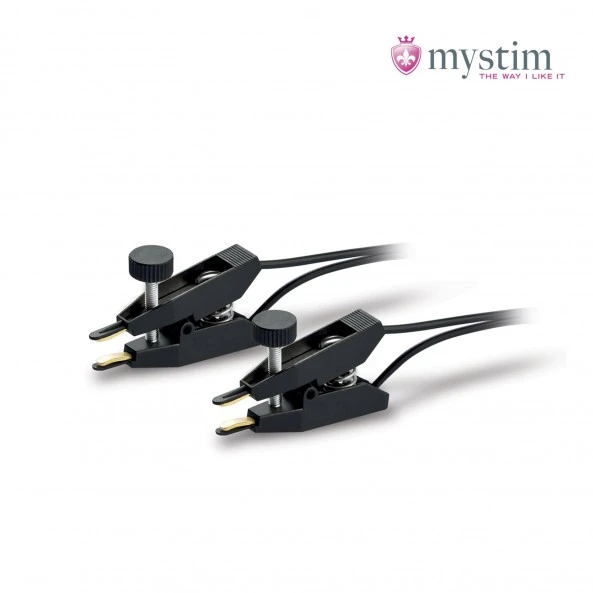 Connectées à un appareil d’électrostimulation Mystim (non-inclus), ces pinces délivrent de légères décharges électrique provoquant des sensations de picotement très stimulante. Placez les sur les parties de votre corps que vous souhaitez stimuler comme les seins, les lèvres, etc… et explorez de nouvelles sensations.