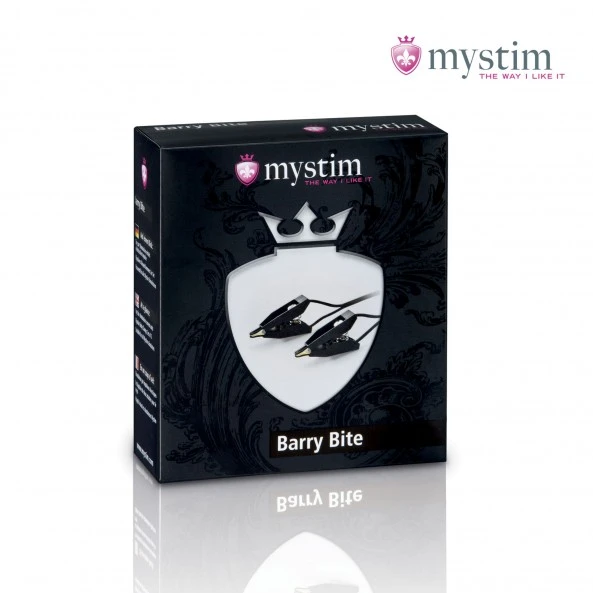 Électrisez vos jeux érotiques avec les pinces Bi-Polaire Barry Bite Mystim avec contacts plaqués Or et vis pour ajuster le serrage.