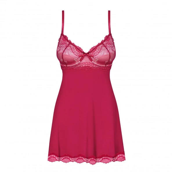 Être irrésistible fait partie du programme ce soir ? Vous ne voulez pas une tenue trop découvrante pour jouer la carte du mystère ? Alors la babydoll et son string assorti sont un bon choix de tenue et le modèle Rosalyne d’Obsessive le bon moyen pour séduire à coup sûr. Vous ne passerez pas inaperçue avec ce rouge profond et cette belle dentelle sur les bonnets. Le satin de la babydoll assure une coupe discrète, où vous ne vous dévoilez pas, vous suggérez simplement. A vous ensuite d’en profiter pour vous rendre désirable, mais cette nuisette vous en donne tous les moyens.