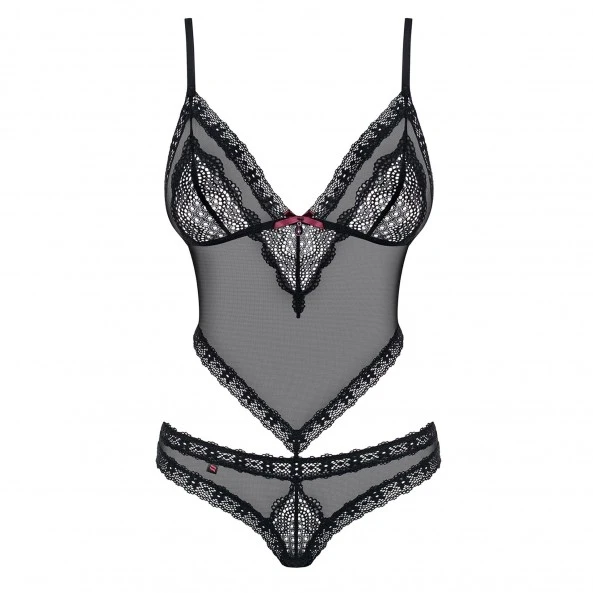 Ce body à la dentelle très graphique devrait pouvoir faire des merveilles auprès de votre partenaire. Loin d’être classique, ce modèle de la collection 820 d’Obsessive propose une dentelle qui est plutôt charmante. On la trouve sur les coutures du body ainsi que sur les seins. Dense, elle dessine un graphisme assez excitant avec ces petites ouvertures qui se répètent tout le long de la dentelle. On adore aussi que la coupe laisse les hanches libres afin de dessiner avec le bas du body un string plutôt sexy. Nul doute que si vous voulez surprendre et épater votre partenaire, vous êtes sur la bonne page.
