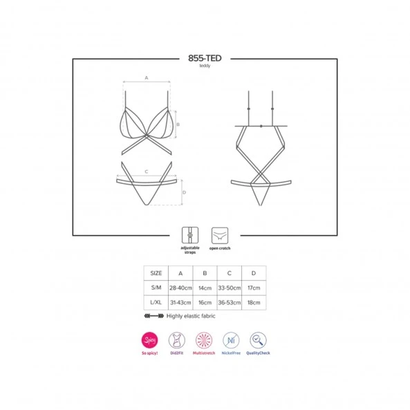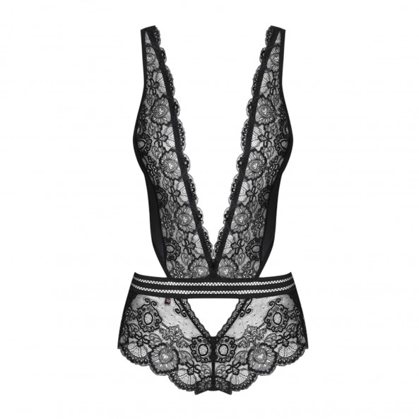 Vous vous imaginiez encore que le body manquait de sex-appeal, que trop couvrant il ne jouait pas son rôle de lingerie pour plaire et séduire ? C’est parce que vous n’aviez pas encore vu ce modèle de chez Obsessive. Il offre un décolleté plongeant jusqu’au nombril qui, rien que lui, devrait faire tourner la tête de votre partenaire. Fait de dentelle, elle part des épaules pour arriver aux hanches en laissant vos flancs libres de tout tissu pour mieux dessiner les courbes de votre corps. La partie basse du body laisse une belle ouverture au-dessus de la partie cache-sexe pour mieux vous laisser imaginer la suite des réjouissances.