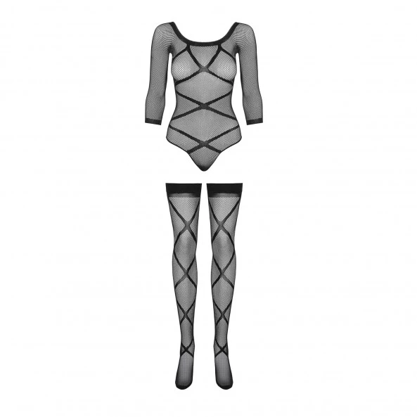 Il y a des body un peu classiques, mignons, sexy même, mais classiques. Là, vous allez jouer la carte de l’originalité avec cette superbe pièce d’Obsessive, avec les bas assortis. Ce body joue sur la transparence de sa résille et ajoute une touche très coquine avec un laçage tout autour du corps, et sur les bas, qui fait inévitablement penser à du bondage. Vos formes sont mises en avant par ce laçage, l’effet corde est particulièrement chaud, les seins explosent avec cette coupe, et le body reste confortable malgré tout. Vous avez là de bons ingrédients pour très bien commencer une soirée. Pour vous simplifier la soirée et la tenue, les bas sont autofixants, vous n’avez donc pas besoin de porte-jarretelles.