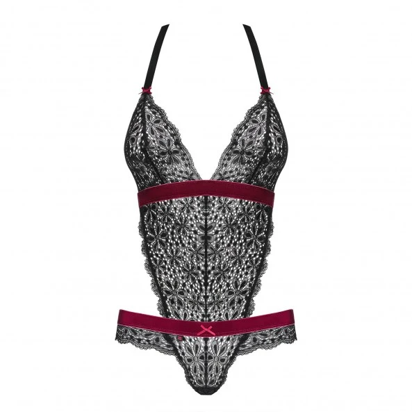 Dans sa forme globale, le body Rossita d’Obsessive est somme toute classique. Mais chaque petit élément a été retravaillé de façon à vous rendre irrésistible de charme et de sex-appeal. La partie sur votre bas-ventre profite ainsi d’une coupe sans couture pour votre confort. Vos hanches sont totalement dégagées pour mieux les mettre en avant. L’empiècement de velours rouge, parfait contraste avec la dentelle noire, souligne juste ce qu’il faut votre poitrine pour la faire passer de séduisante à excitante. La dentelle elle-même vous cache juste assez pour avoir envie d’en savoir plus et est parsemée de petits nœuds qui invitent les yeux de votre partenaire à parcourir tout votre corps mis en avant dans ce body Rossita. Ne vous étonnez pas de ses élans de passion.