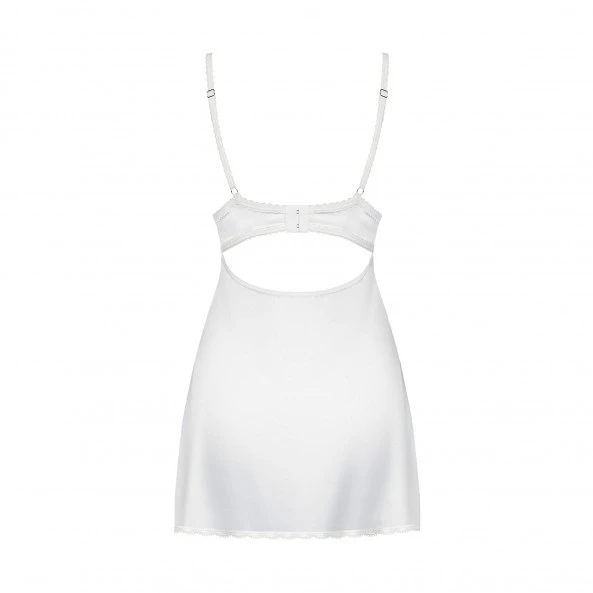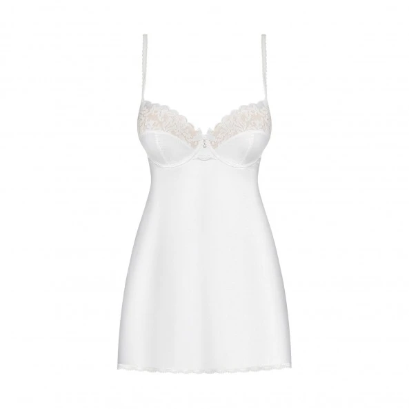 Magnifique nuisette blanche unie idéale pour votre nuit de noce. Broderies sur le galbe des seins et liseret de fines dentelles sur le pourtour bas de cette nuisette. Chic et très glamour à la fois !
