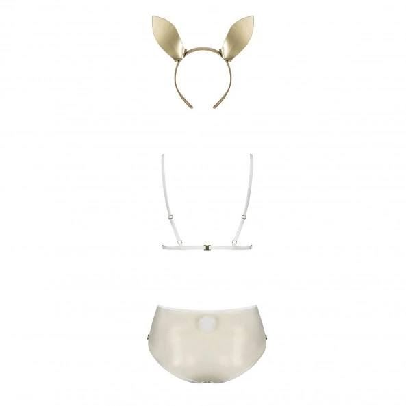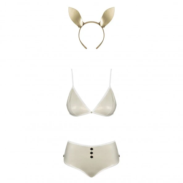 Le costume Neo Goldes est le choix parfait pour vous faire remarquer lors de vos soirées les plus folles. Ce costume métallisé comprend un soutien-gorge, un short taille haute pour un tour de taille phénoménal, un serre-tête et un tour de cou extensible. Les bretelles sont réglables pour un ajustement parfait, et la matière est confortable et agréable au toucher. Le soutien-gorge possède des bonnets triangulaires qui subliment la poitrine et un joli pompon décoratif à l’arrière. Le short est taille haute et possède des boutons décoratifs devant et sur les côtés pour un look encore plus sexy. Avec les mignonnes oreilles de lapin dorées, ce costume vous garantira un véritable effet « wow » !