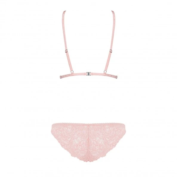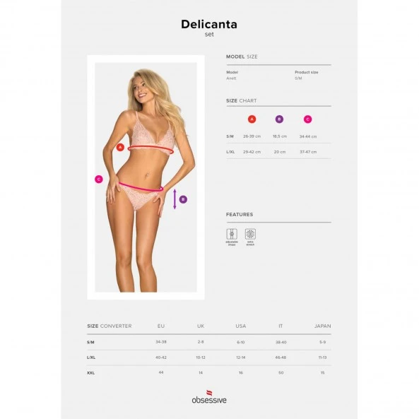 Avec l’ensemble 2 pièces Delicante d’Obsessive, vous êtes tout d’abord à la recherche d’un certain confort et d’une certaine élégance. C’est exactement le genre d’ensemble que l’on porte sur soi pour se savoir désirable, coquine, séduisante, mais sans vouloir jouer la carte de la lingerie irrésistiblement sexy. Il n’est pas question ici de minimalisme en matière de tissu. Le soutien-gorge supporte bien vos seins, d’autant plus avec les bretelles réglables conçues avec un système propre à Obsessive. La culotte sait être sexy sans vous découvrir autant qu’un string ou un tanga. Elle réussit l’exploit d’être à la fois sage et excitante. On note aussi la couleur, particulièrement bien choisie de vert d’eau. Elle est douce et donne envie aux yeux envie de flâner sur les courbes qui agitent la délicate dentelle de l’ensemble.