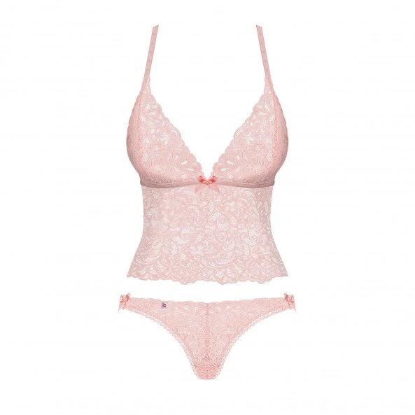 Vous avez envie de vous sentir féminine sans trop vous découvrir. Vous cherchez une tenue qui laisse deviner vos lignes séduisantes sans tout jouer sur la nudité ou la transparence ? Alors, le top Delicanta, en couleur vert d’eau, par Obsessive est un choix judicieux. Le top couvre vos seins jusqu’au nombril, juste assez pour dire à quel point vous êtes belle en dessous, mais sans trop le montrer pour mieux le laisser imaginer. Vous aimerez aussi sa culotte de coton aux arabesques de dentelle. Pas trop découverte non plus, elle laisse juste deviner ce qu’il faut de vos fesses pour donner envie d’en savoir plus.