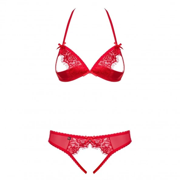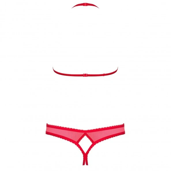 Il y a des ensembles de lingerie dont on sait sans hésitation le but ultime. Et lorsque l’on enfile pour la première fois cet ensemble, on a effectivement aucun doute. Cet ensemble, d’un magnifique rouge provoquant, se compose d’un soutien-gorge et d’un string. La dentelle y est élégante, le tissu confortable. Mais ce qui plaît le plus, c’est l’absence de tissu sur les bonnets du soutien-gorge et au niveau de l’entrejambe. Avec votre bénédiction, votre corps est donc offert à tous les assauts amoureux de votre partenaire. Il ne pourra pas résister à des seins si accessibles, à une intimité si aisément conquise. Vous allez être l’objet de toutes les attentions et vous allez adorer cela. La qualité du tissu, son ajustement impeccable et les réglages du soutien-gorge vous assurent le confort optimal dans toutes les situations.