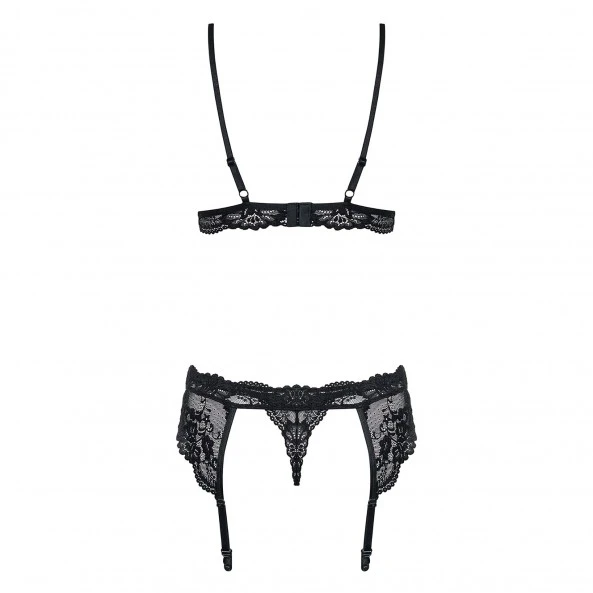 Voilà un ensemble 3 pièces qui saura se plier à toutes les occasions. Envie simplement de vous faire plaisir avec une lingerie coquine, mais agréable à porter au quotidien ? Vous venez de trouver votre bonheur. Envie de faire plaisir à votre partenaire avec votre plastique mise en avant dans une tenue sexy ? Vous êtes toujours sur la bonne page. En effet, Obsessive propose ici un ensemble 3 pièces complètement charmant. L’ensemble est en dentelle, les bonnets sont rembourrés pour un effet push-up, la ligne de buste colle bien le soutien-gorge à la poitrine, le string est bien coupé, le porte-jarretelle est très sexy. Il n’y a plus de raison de croire que l’on ne peut pas être étourdissante jour et nuit.