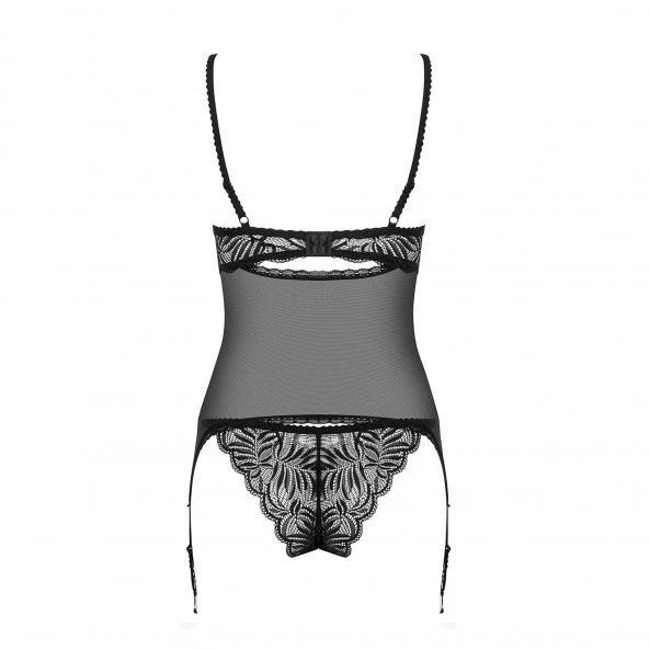 La guêpière, c’est le charme et la sophistication. C’est l’audace aussi pour certains modèles, ce qui est d’autant plus appréciable que cette audace vous met en valeur pour faire des invitations très coquines. Et vous allez pouvoir en faire des promesses avec cette guêpière Contica. Si on retrouve évidemment à la fois la partie bustier et la partie porte-jarretelle, on ne peut qu’être séduit par la coupe originale qui laisse apparaître complètement le ventre. Les seins sont aussi bien mis en valeur en reprenant la dentelle au motif feuillu sur l’on trouve chez cette marque. Joliement déshabillée avec cette guêpière, vous avez tous les élèments pour mettre le feu.