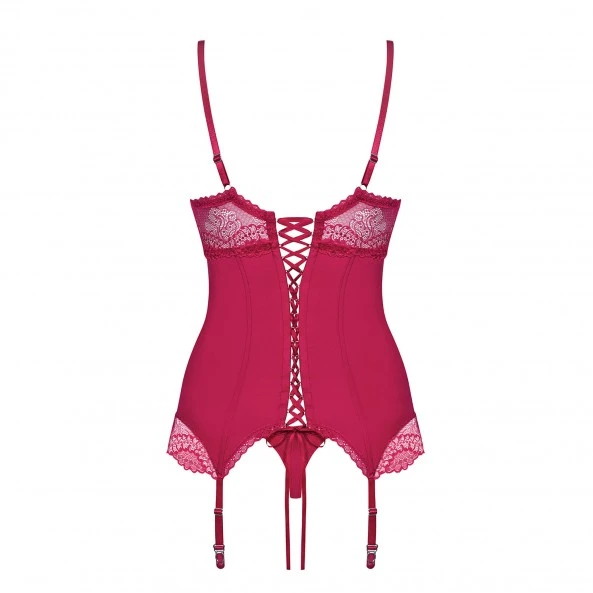 Envie de porter une guêpière pour faire craquer votre partenaire ? Vous n’osez pas encore porter une tenue si sexy et vous découvrir tant ? Alors ce modèle Rosalyne d’Obsessive va répondre à vos besoins. A une certaine timidité ou envie de ne pas trop se découvrir, la guêpière répond par un tissu de satin qui recouvre le ventre de fort belle manière. Vos courbes sont affinées, vos imperfections gommées. Pour être séduisante, les bonnets du soutien-gorge utilisent une belle dentelle et sont rembourrés pour mieux vous sentir en valeur. Derrière, le laçage dorsal apporte une touche supplémentaire de féminité. Vous ne manquerez donc pas de vous sentir en confiance dans ce modèle très réussi.