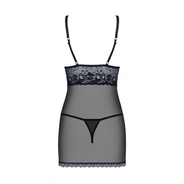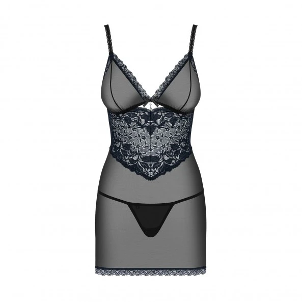 La nuisette 866 de chez Obsessive est fidèle à la réputation d’une lingerie coquine et élégante de la part de ce spécialiste. En effet, ce modèle associe le plaisir de la nuisette avec celui de la maille micro-résille. Sur tout le corps, cette nuisette sculpte vos formes tout en montrant au travers de la maille vos courbes et vos charmes. Sous les seins, un magnifique plastron de dentelle noire et bleue, dentelle que l’on retrouve sur les bonnets, offre une touche très séduisante. On appréciera aussi les bonnets semi-transparents qui font honneur à vos seins. Un tissu confortable pour mouler votre corps sans le contraindre, une longueur mi-cuisse excitante, tous les ingrédients sont réunis pour ne pas s’endormir tout de suite.