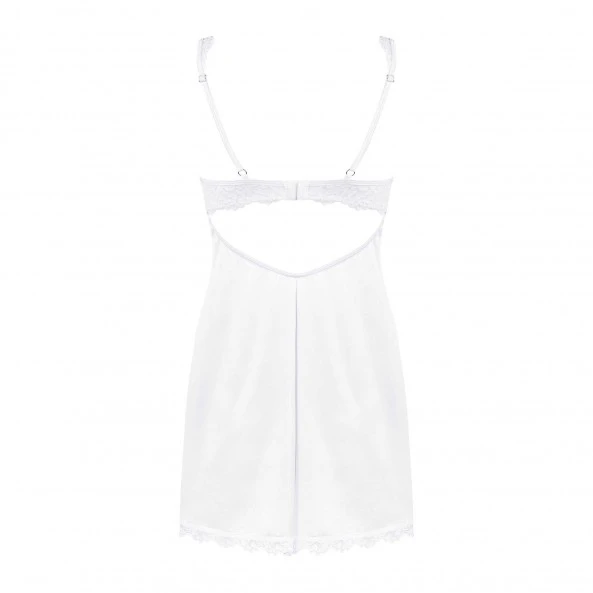 La nuisette Amor Blanco est une lingerie extrêmement sexy qui met en valeur la féminité et le sex-appeal. Elle est fabriquée avec des matières délicates et souligne la silhouette de manière sensuelle. Elle est parfaite pour une nuit de noces ou une soirée passionnée avec votre partenaire. Elle comprend un string assorti, est en dentelle séduisante, possède des bretelles décorées et réglables, un soutien-gorge à armatures et un fermoir réglable à l’arrière pour plus de confort et commodité.
