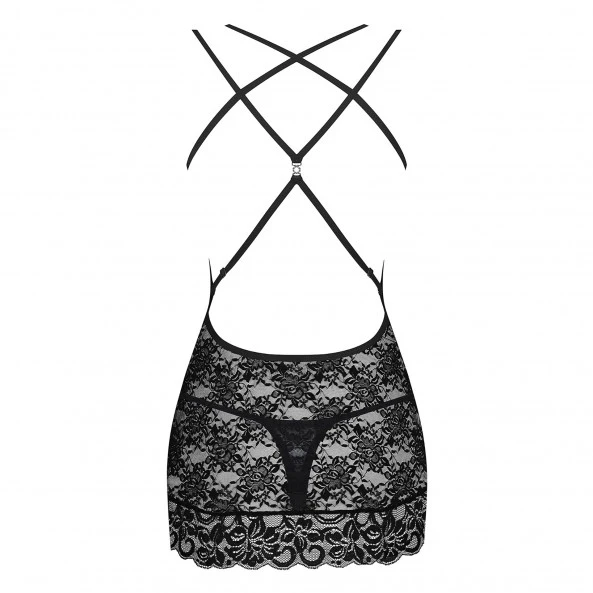 A la recherche d’une collection de lingerie glamour, sexy et intemporelle ? Alors la 860 d’Obsessive est un trĂšs bon choix. La nuisette est un trĂšs bon exemple car elle va littĂ©ralement faire fondre votre partenaire. Moulante, elle Ă©pouse votre corps et vos courbes fĂ©minines de toute sa longueur avec une dentelle florale noire assez transparente. Au niveau des seins, le soutien-gorge a tout pour recevoir votre approbation. Une laniĂšre parcoure le haut des bonnets pour bien appuyer visuellement la forme de vos seins, un petit bijou bien placĂ© attire l’Ćil. On apprĂ©cie aussi la double-laniĂšre pour le confort Ă porter cette nuisette. Si sexy dans cette nuisette qu’on risque fort de vous la retirer rapidement.