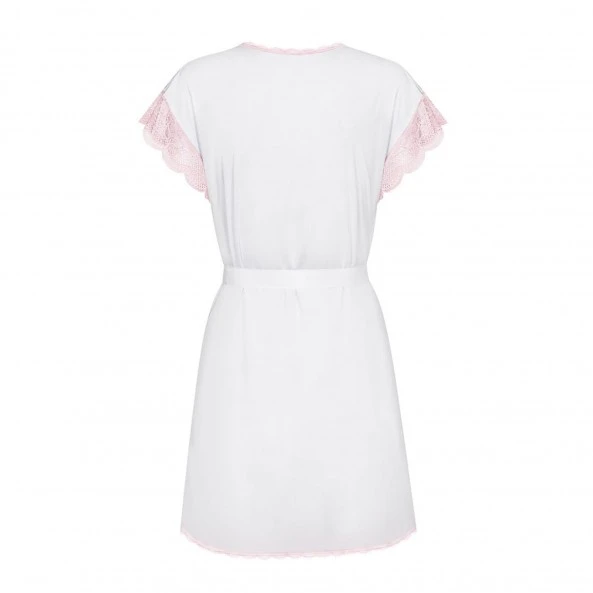 DĂ©couvrez le Peignoir Girlly Rose & Blanc de la marque Obsessive, une pièce Ă©lĂ©gante et sensuelle qui sera parfaite pour sortir de la douche ou pour surprendre votre partenaire. Il met en valeur vos courbes grâce Ă sa matière fine et douce, et est dotĂ© d’une ceinture satinĂ©e pour souligner votre taille. Il possède des manches courtes en dentelle rose et un design Ă©lĂ©gant sur les bords pour vous rendre encore plus irrĂ©sistible. La combinaison de la couleur blanche et du rose poudrĂ© met en avant votre fĂ©minitĂ©. Un string assorti est inclus.