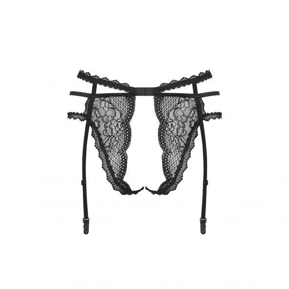 À porter pour commencer une nuit torride, ce Porte-Jarretelle Pearlove plus que sexy accroît de manière spectaculaire votre pouvoir de séduction sur votre partenaire. Le String Ouvert qui l’accompagne met en valeur vos atouts avec une dentelle florale noire est du plus bel effet. Les deux sont joint devant par lien subtil de 4 petits strass pour magnifier le bas-ventre. L’arrière n’est pas en reste, face à votre partenaire de jeux coquin, retournez-vous et constatez par vous-même que l’effet est dévastateur. Les Nippies (Caches-seins) ainsi que les bas sont vendus séparément.