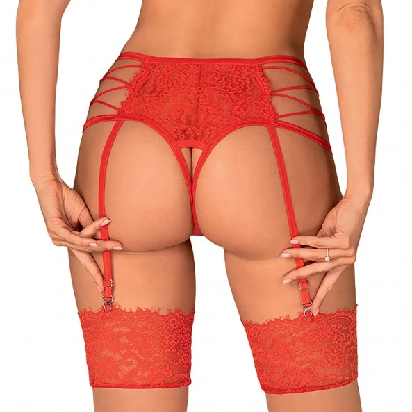 Le porte-jarretelles Rediosa est un produit séduisant et sensuel, idéal pour les expériences plus osées. Il est fabriqué en dentelle rouge avec un motif floral, et comprend des détails originaux tels que des bretelles entrelacées sur les côtés pour souligner les hanches, et un entrejambe ouvert pour un look plus sexy. Il est également réglable pour garantir un ajustement parfait et agréable au toucher.