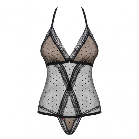 Le body Teddy 876 d’Obsessive vous invite aux jeux amoureux avec une tenue particulièrement sexy et glamour. Ce body au tissu multi stretch vous colle à la peau dans une agréable sensation de confort. Il dévoile vos formes et les met en avant grâce à sa coupe élégante, imitant le string, et une dentelle présente sur tous les bords du body. Une grande croix de dentelle vient compléter l’aspect graphique de ce body. Bonnets souples pour le confort, réglages précis des bretelles pour bien dessiner votre corps, petit strass pile entre les deux seins, nul doute que vous enfilerez ce body pour être séduisante et que personne ne pourra vous résister.