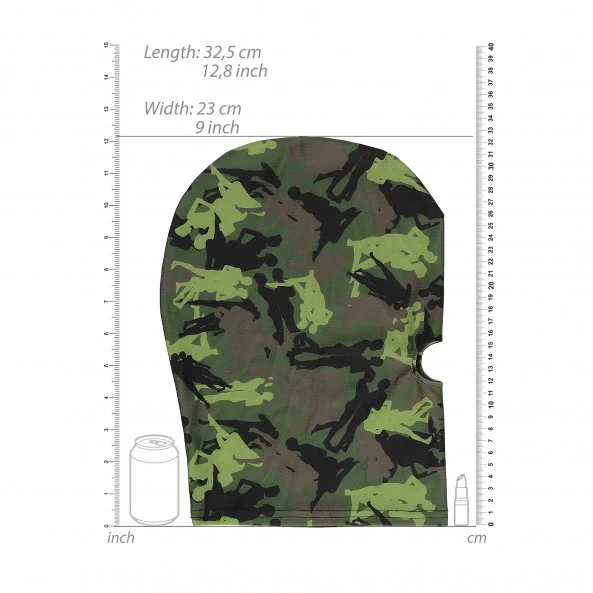 La Cagoule Ouverture Bouche Army Theme Ouch! s’adapte à la plupart et dispose d’un trou au niveau de la bouche permettant des rapports oraux dans l’obscurité.