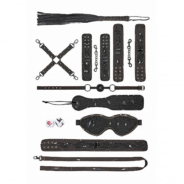 Ce kit très complet a tout ce qu’il faut pour varier les plaisirs du BDSM . À l’exception des dés, la totalité des éléments de ce kit sont recouverts d’un tissu jeans qui le rend élégant et moderne. Il est composé de pas moins de 9 articles conçus avec des matériaux de qualité : 1 masque occultant, 1 paddle de fessée, 1 jeu de dés (Actions et Positions), 1 paire de menottes poignées, 1 paire de menottes chevilles, 1 croix d’entrave, 1 collier avec sa laisse, 1 martinet de lanières de cuir, et enfin 1 bâillon « boule » noire. Le kit Bondage Denim est idéal pour les débutants, mais aussi efficace pour les personnes confirmées de la pratique BDSM . Il comblera sans effort toutes vos demandes et fantasmes en la matière ! Ce kit existe en 2 coloris : Bleu ou Noir.
