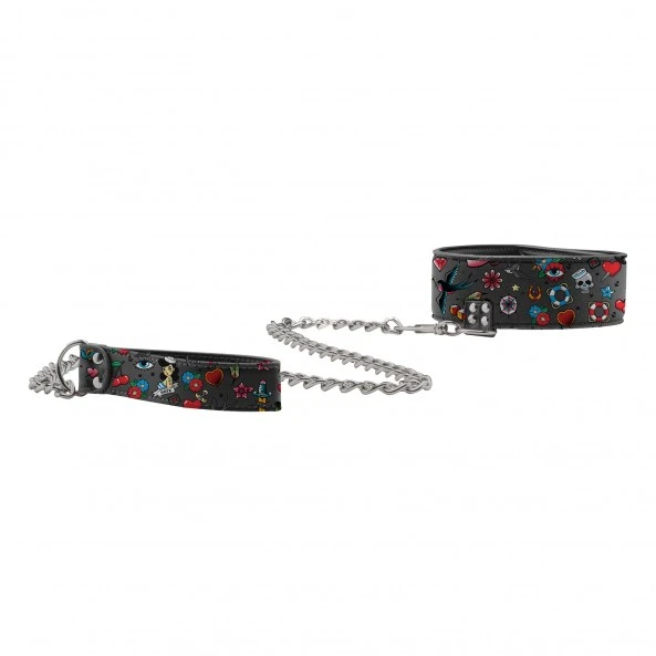 Issu de la collection Old School Tattoo Style par Ouch! le collier laisse Tattoo Style Ouch est idéal pour vos jeux BDSM.