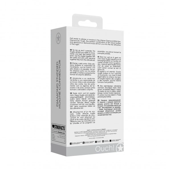 Le Hogtie Diamonds Ouch! se connecte à vos menottes de poignets et menottes de chevilles Diamonds afin d’offrir une contrainte en croix à votre partenaire. (menottes vendues séparément)