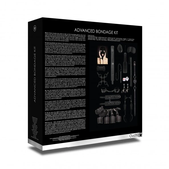 Plus de 15 éléments BDSM qui font de ce kit Advanced Bondage le plus complet de la marque. Les produits Ouch ! sont centrés sur les pratiques BDSM et offre tout une gamme d’outils et d’accessoires dédiés aux désirs de soumissions ou de dominations.