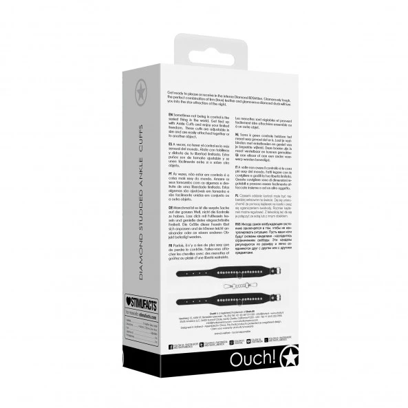 Les Menottes de Cheville Diamonds Ouch! sont robustes et se connectent entre elles par une chainette à mousquetons. Chaque menotte dispose d’un réglage type ceinture pour un ajustement parfait.