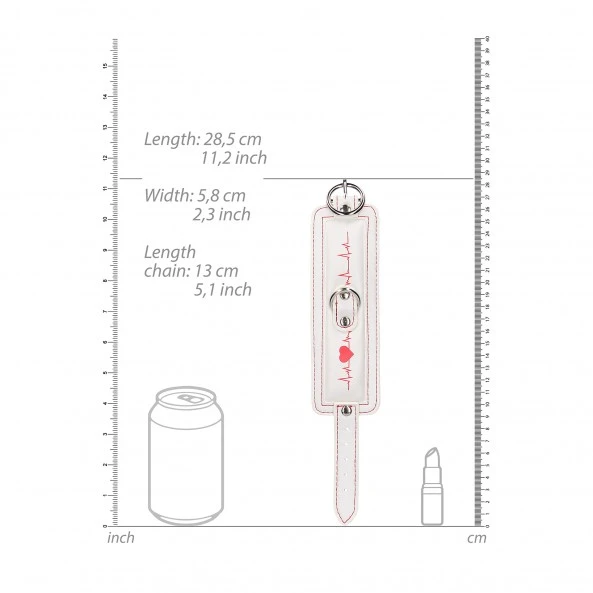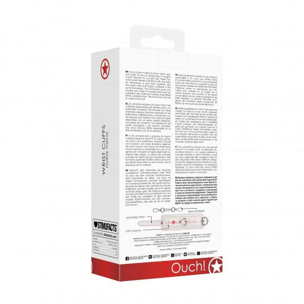 Les Menottes Nurse Theme Ouch! sont robustes et se connectent entre elles par une chainette à mousquetons. Chaque menotte dispose d’un réglage type ceinture pour un ajustement parfait.