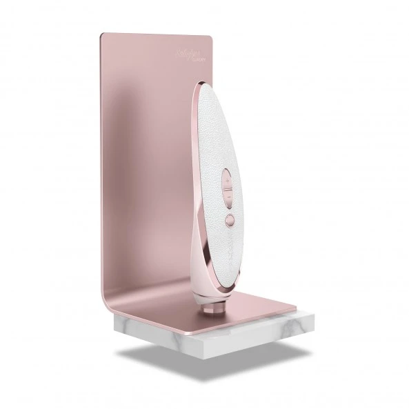 Le Satisfyer Prêt-à-Porter dispose d’une finition haut de gamme en métal et cuir blanc, lui donnant une touche luxe, moderne et élégant.