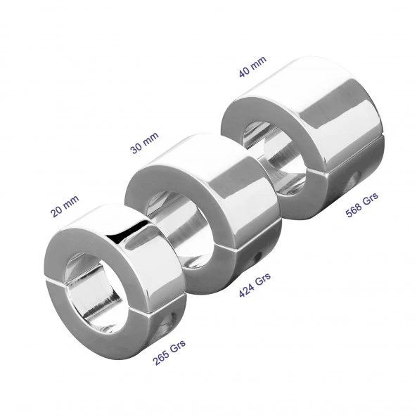 Les Anneaux Ball Stretchers Métalliques Stell Ball sont destinés à une clientèle avertie en mal de nouvelles sensations intenses. Ces anneaux sont destinés à enserrer les testicules à leurs bases afin de les rendre extrêmement sensibles. Ils sont vendus séparément et existent en 3 épaisseurs différentes : 20, 30 et 40 mm avec un poids respectif de 265, 424 et 568 grammes. À manipuler avec précaution notamment au moment de la fermeture. Avant de commencer le serrage des 2 vis de la partie amovible, veillez à vérifier qu’aucun morceau de peau ne se trouve sur les faces plates accueillant le fermoir. Entièrement en acier inoxydable de qualité médicale, ils sont simples à nettoyer et à stériliser.