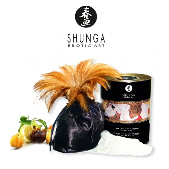 Ici, les poudres corporelles parfumées Shunga (5 Parfums aux choix dans cette gamme). Imaginez les petits frissons que peut provoquer un petit plumeau promené sensuellement sur votre peau… Imaginez en plus que votre partenaire ait envie de vous dévorer de baisers…