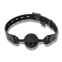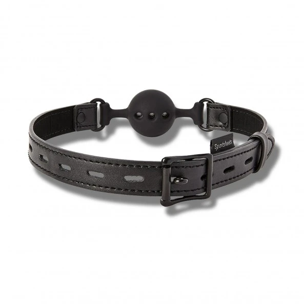 Le bâillon Sportsheets Saffron Breathable Ball Gag est réalisé en faux-cuir végétalien composé de polyuréthane, en silicone (boule) et métal sans nickel. Le bâillon boule Saffron noir est conçu pour que vous appreniez à communiquer d’une autre manière, en utilisant votre corps pour parler. La boule est percée de trous permettant de respirer normalement lors de son utilisation.