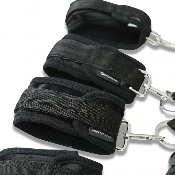 Sportsheets Under the Bed Restraint System est un système d’attaches pour lit simple d’utilisation qui convient à tout les types de matelas. Placez les sangles sous le lit et laissez dépasser les 4 menottes velcro à chaque extrémités du lit. Une fois terminé, placez les menottes sous le lit pour un rangement facile jusqu’à la prochaine utilisation.