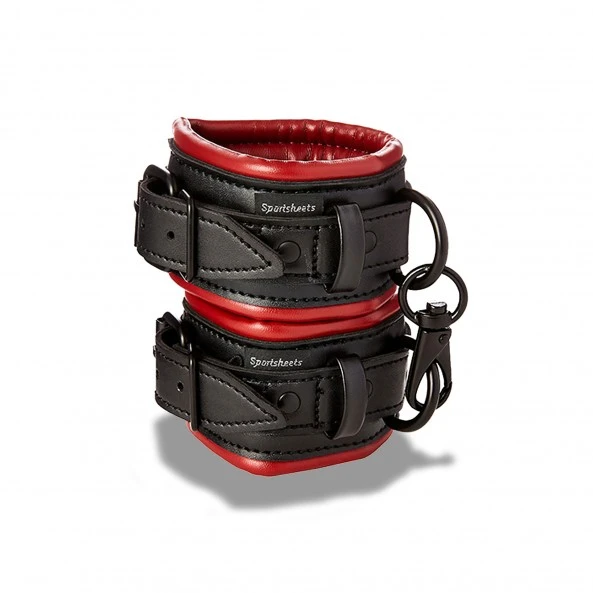 Les menottes Sportsheets Saffron Handcuffs sont réalisées en faux-cuir végétalien composé de polyuréthane et métal sans nickel. Chaque menotte au design rouge et noir est rembourrée pour plus de confort et leur attache par mousqueton permet une utilisation avec des accessoires BDSM (vendu séparément) comme une barre d’écartement, chaîne, croix ou autres.