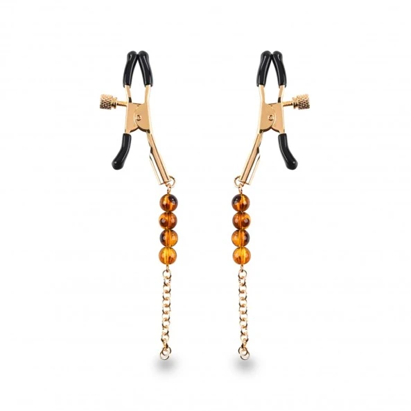 Dans le détail et en résumé : Les Pinces à Seins Perles Amber sont fabriqué à partir de matériaux de qualité, notamment du métal, de l’acrylique couleur ambre et du PVC ultra-souple anti-dérapant. Une molette de serrage progressif. Leur dimension : 13 cm. Léger et donc, facile et agréable à porter, leurs poids est de seulement 9 Grs par pince.