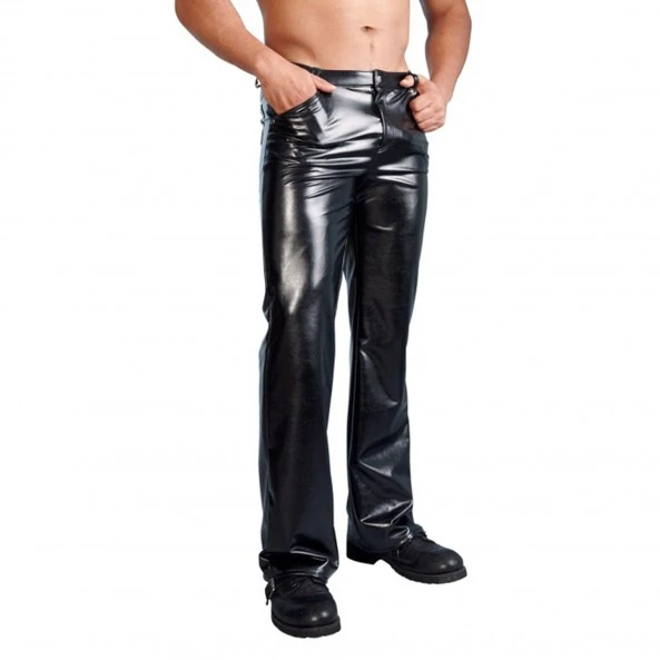 Pantalon Svenjoyment imitation cuir avec 5 poches et fermeture éclair.